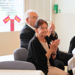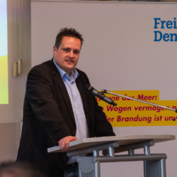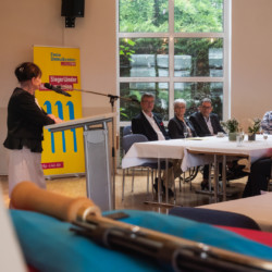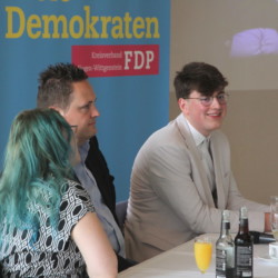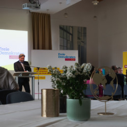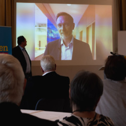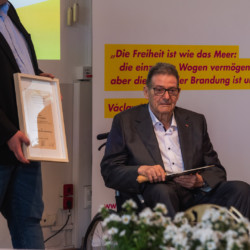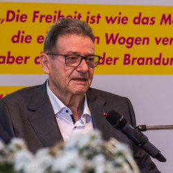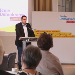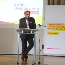 Zur Überraschung aller reihte sich ein dritter Laudator ein. Der Parteichef und Finanzminister Christian Lindner sendete eine Videobotschaft aus dem fernen Berlin. Er wäre auch gerne selbst gekommen, aber die aktuellen Diskussionen zum Haushalt und das ZDF-Sommerinterview ließen eine Teilnahme nicht zu. Beide kennen sich seit der Jahrtausendwende gut. „Insbesondere ist mir in Erinnerung, dass Sie auch in den schwierigen Zeiten unseres nordrheinwestfälischen Landesverbandes immer zur Stelle waren“, betonte der Bundesfinanzminister. „Ganz besonders gerne erinnere ich mich daran zurück, wie wir beide in der Programmkommission 2004/2005 das – übrigens erfolgreiche – Wahlprogramm für die Landtagswahl 2005 geschrieben haben und vieles davon zwischen 2005 und 2010 umsetzen konnten“. Für den Bundesvorsitzenden der Liberalen ist der Ehrenpreis eine „berechtigte Auszeichnung für das politische Lebenswerk“ von Hagen Tschoeltsch, dem er „ganz großen Respekt“ zollte und das mit einem „Dank der Freien Demokraten insgesamt, für das, was Sie bewegt haben“ verband. Zugleich hofft Lindner auch weiterhin darauf, dass wir Liberalen „auf Ihren Rat zählen können“.