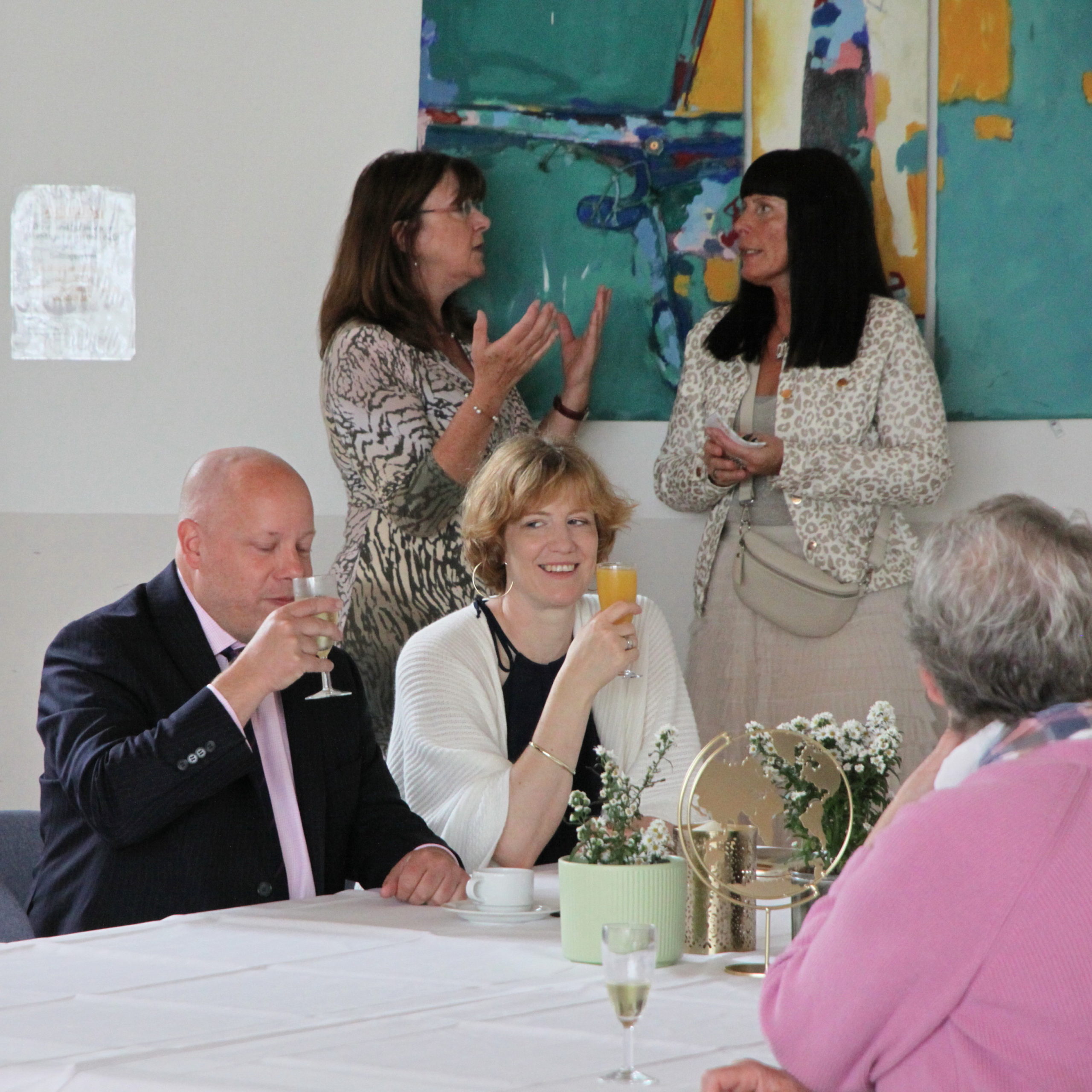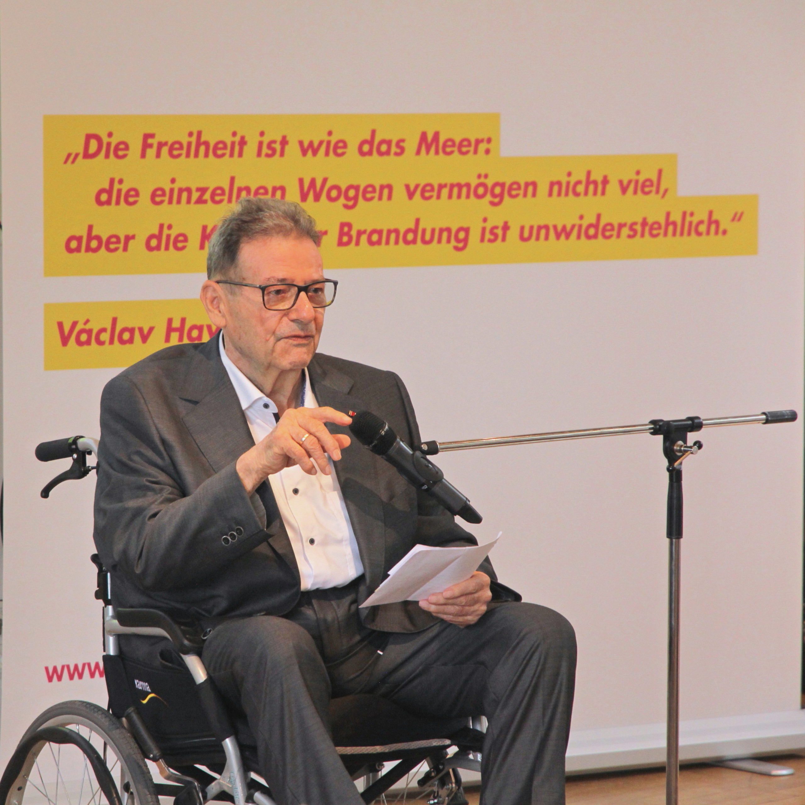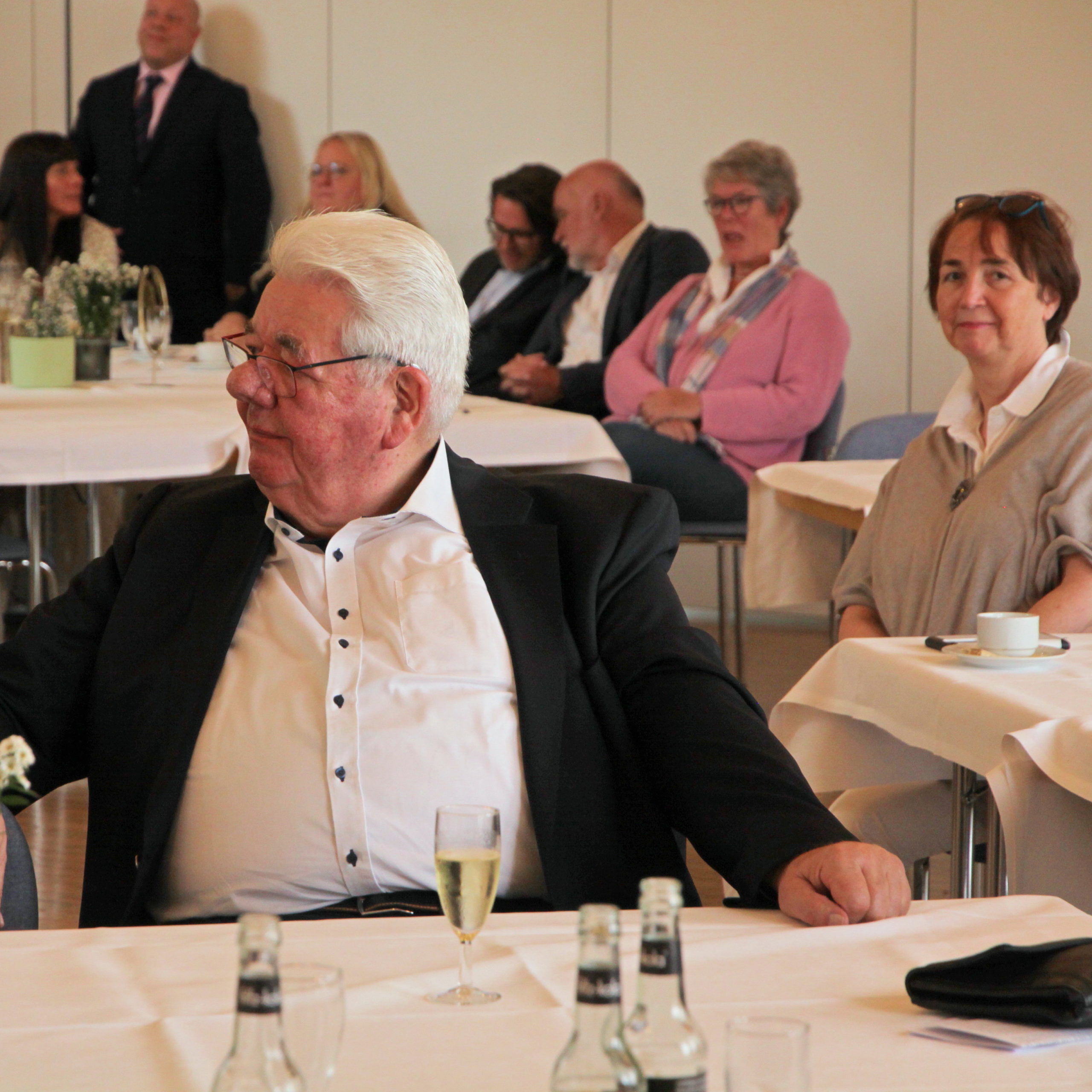 Zur Überraschung aller reihte sich ein dritter Laudator ein. Der Parteichef und Finanzminister Christian Lindner sendete eine Videobotschaft aus dem fernen Berlin. Er wäre auch gerne selbst gekommen, aber die aktuellen Diskussionen zum Haushalt und das ZDF-Sommerinterview ließen eine Teilnahme nicht zu. Beide kennen sich seit der Jahrtausendwende gut. „Insbesondere ist mir in Erinnerung, dass Sie auch in den schwierigen Zeiten unseres nordrheinwestfälischen Landesverbandes immer zur Stelle waren“, betonte der Bundesfinanzminister. „Ganz besonders gerne erinnere ich mich daran zurück, wie wir beide in der Programmkommission 2004/2005 das – übrigens erfolgreiche – Wahlprogramm für die Landtagswahl 2005 geschrieben haben und vieles davon zwischen 2005 und 2010 umsetzen konnten“. Für den Bundesvorsitzenden der Liberalen ist der Ehrenpreis eine „berechtigte Auszeichnung für das politische Lebenswerk“ von Hagen Tschoeltsch, dem er „ganz großen Respekt“ zollte und das mit einem „Dank der Freien Demokraten insgesamt, für das, was Sie bewegt haben“ verband. Zugleich hofft Lindner auch weiterhin darauf, dass wir Liberalen „auf Ihren Rat zählen können“.