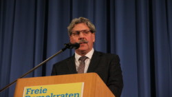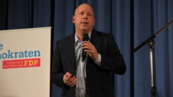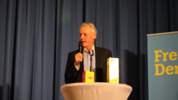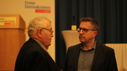 Mit Gerhard Kötter wurde schließlich ein liberales Urgestein für sein kommunalpolitisches und ehrenamtliches Lebenswerk ausgezeichnet. Der ehemalige Vorstand der Volksbank Siegerland war bis November 2021 noch gewählter Stadtrat in Siegen und mehr als dreißig Jahre Mitglied der Liberalen. „Gerhard Kötter verfolgt bei seinen vielfältigen politischen Funktionen den Grundsatz, dass man wissenschaftlichen Fortschritt wahrnehmen und ihn kritisch abwägen soll, bevor man Entscheidungen trifft. Er ist in der Politik jemand, der sich klar für Erneuerungen und Modernisierungen der Wirtschaft ausspricht. Er vertritt eine Zukunftspolitik, die wir – schon aus liberaler Sicht – so auch auf Kreisebene unterstützen und mittragen“, so der stellvertretende Kreisvorsitzende Andreas Weigel, der als stellvertretender Kreisvorsitzender mit Peter Hanke und Guido Müller satzungsgemäß die Preisträgerjury bildet. In einer ausgesprochen lebendigen und launigen Laudatio machte Ulf Stötzel, Bürgermeister a. d. der Stadt Siegen, überhaupt erst deutlich, wie umfassend Gerhard Kötter als „Zugereister“ in vielen Vereinen und Politik das Geschehen in Siegen-Wittgenstein mitprägt. Das war schon beeindruckend.