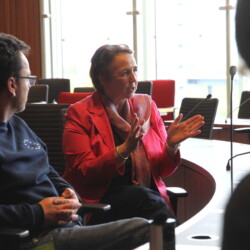 Bevor es jedoch zum persönlichen Gespräch mit Freimuth und Pfeil kam, stand eine allgemeine Einführung in die Tagesordnung durch den Besucherdienst sowie die Beobachtung der Plenarsitzung von der Tribüne auf dem Programm. „Europa spielt eine zentrale Rolle für Nordrhein-Westfalen, als Transitland im Herzen von Europa und als Nachbar der BENELUX im Rahmen der grenzüberschreitenden Zusammenarbeit“, unterstreicht Pfeil und führt weiter aus: „Diese Zusammenarbeit zeigt sich in den EUREGIO-Profilschulen, einem gemeinsamen grenzüberschreitenden Gesundheits- und Katastrophenschutz, dem kulturellen Austausch und natürlich einer vielfältigen wirtschaftlichen Verflechtung. Als überzeugte Europäer verstehen die Menschen in Nordrhein-Westfalen die Bedeutung einer starken und vereinten Europäischen Union. Bei der Europawahl am 9. Juni 2024 gehe es darum, Europa stark gegen Extremisten zu machen!“