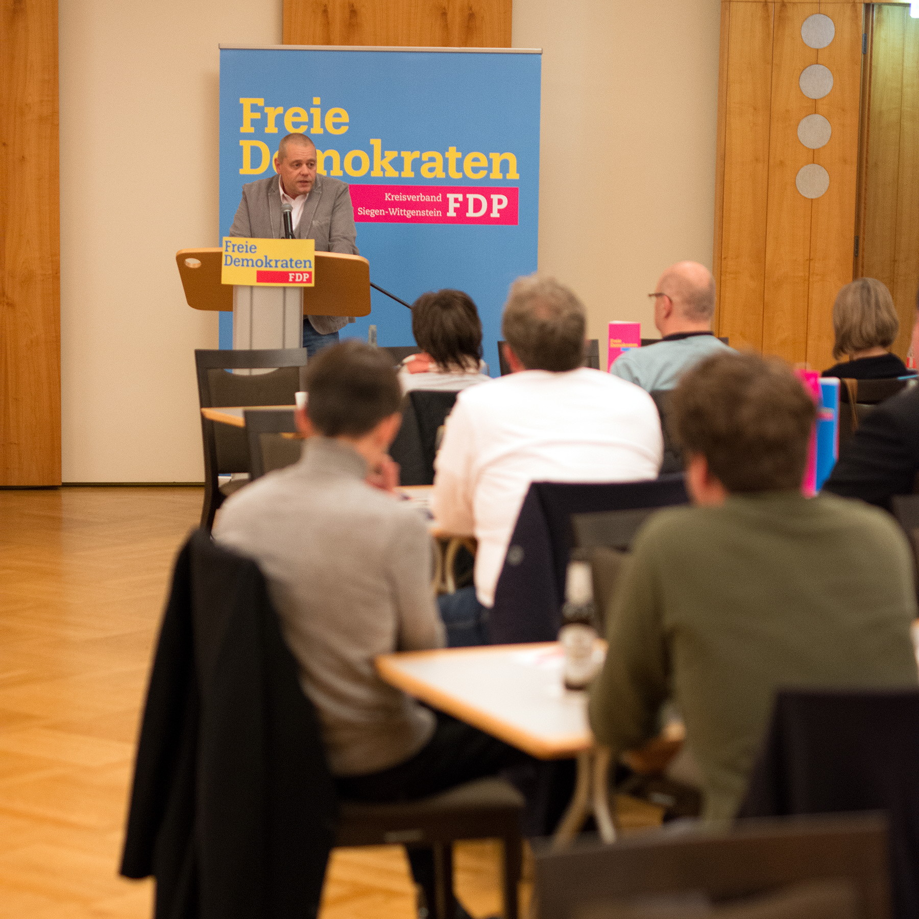 Einmütigkeit bei Wahlversammlung: Im Haus der Siegerländer Wirtschaft trafen sich kürzlich die Liberalen Siegen-Wittgenstein zur Kreiswahlversammlung, um den Startschuss für die Landtagswahl im kommenden Jahr zu geben. „Der Veranstaltungsort war natürlich bewusst gewählt, denn FDP und Wirtschaftspolitik wird auch weiterhin ein Markenschwerpunkt unseres Freiheitsprogramms sein“, erklärt Kreisvorsitzender Peter Hanke den Delegierten. „Uns ist klar, dass viele derzeit auf die Koalitionsverhandlungen in Berlin schauen – und man merkt schon jetzt, dass es gut ist, dass die Liberalen Grenzen aufgezeigt haben, die nicht überschritten werden dürfen. Sei es in der Wirtschaft-, Finanz- oder Steuerpolitik“. Die FDP hofft die anstehenden Landtagswahlen genauso erfolgreich abzuschneiden, wie bei den Bundestagswahlen, wo man dank eines auffälligen, direkten Wahlkampfes dritte Kraft in Siegen-Wittgenstein geworden ist. In der Folge der Bundestagswahl sind viele Menschen in die FDP eingetreten, für einige war die Kreiswahlversammlung jetzt die erste Parteiveranstaltung.